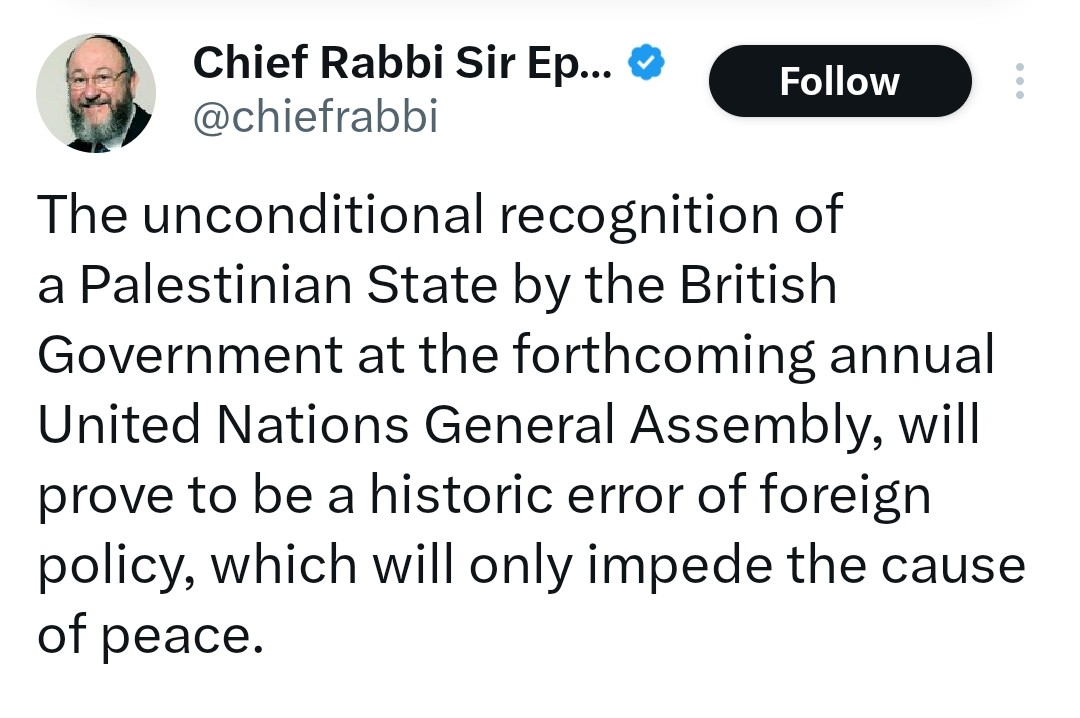 Hardline Zionists, like the Chief Rabbi of the UK, have criticised this action by the UK government as “a reward for terrorism.”