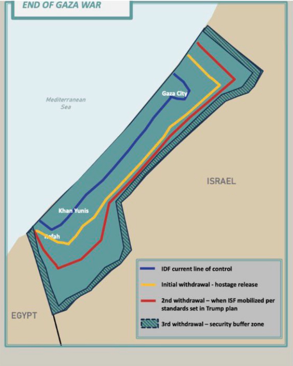 Other significant terms included that Israel will not occupy or annex Gaza as it previously stated it would, as well as the establishment of a temporary International Stabilisation Force (ISF) to be immediately deployed into Gaza.