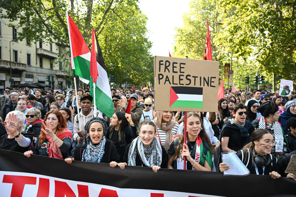 Demonstrators filled Piazza Leonardo Da Vinci, waving Palestinian flags and chanting “Free Palestine.” Genoa saw 40,000 people marching from the ferry terminal to the city center, while at least 10,000 rallied in Brescia.