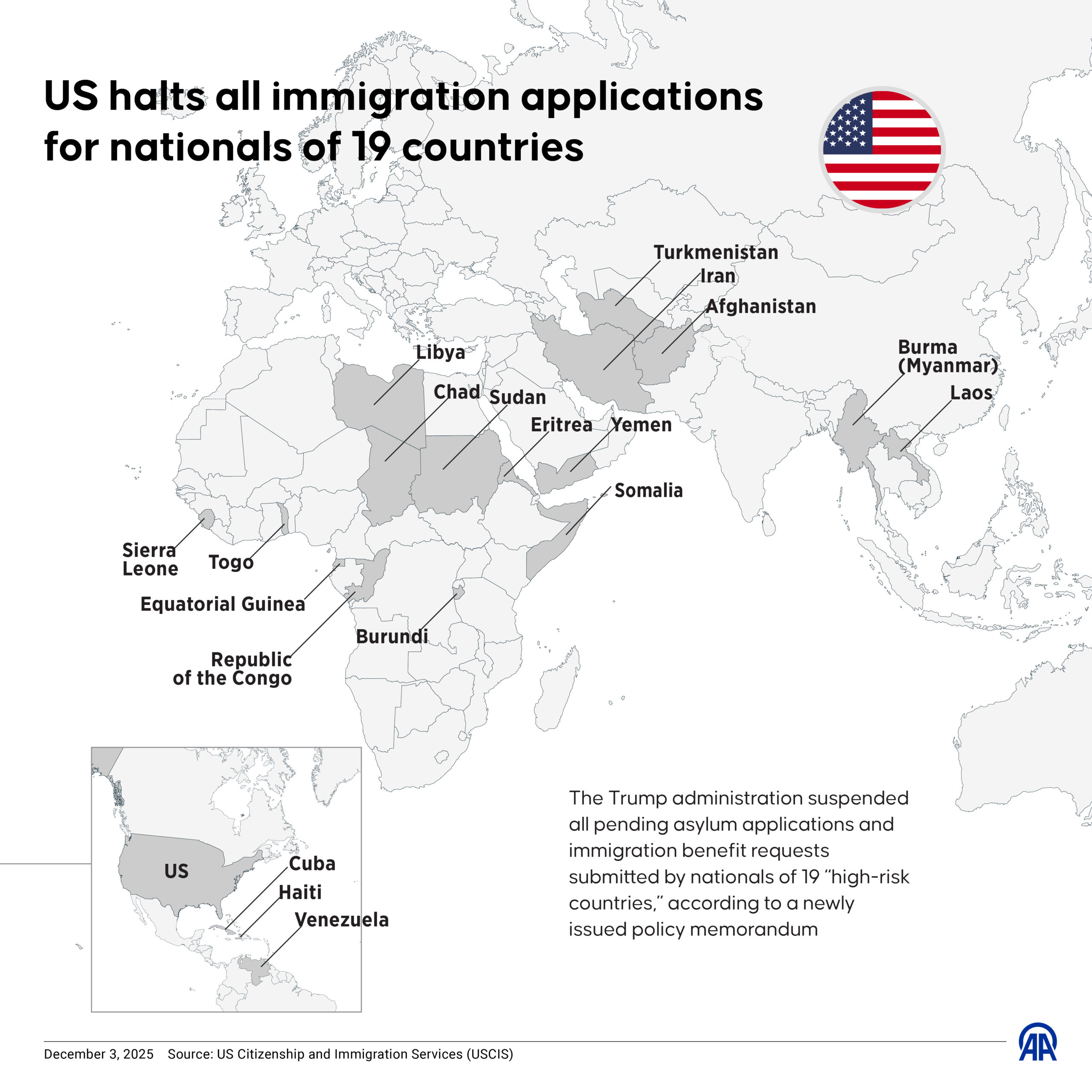 The suspension comes amid reports that President Donald Trump is preparing to expand a June executive order restricting travel from 19 countries to a list of around 30, affecting several nations across Africa, the Middle East and the Caribbean. Many of the targeted states are Muslim-majority countries, including Afghanistan, Chad, Iran, Libya, Somalia, Sudan and Yemen.