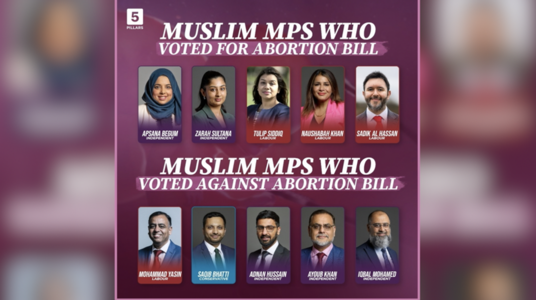 Those who voted for decriminalisation were Dr Zubir Ahmed (Labour), Sadik Al Hassan (Labour), Apsana Begum (Independent), Zarah Sultana (Independent) and Tulip Siddiq (Labour).