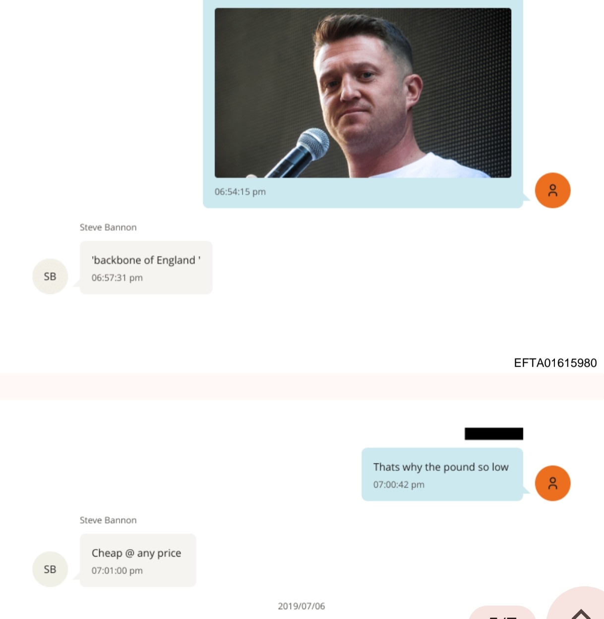 “TOMMY ROBINSON!! good work,” Epstein wrote to an unnamed figure in one message celebrating Robinson’s release from jail in 2018.